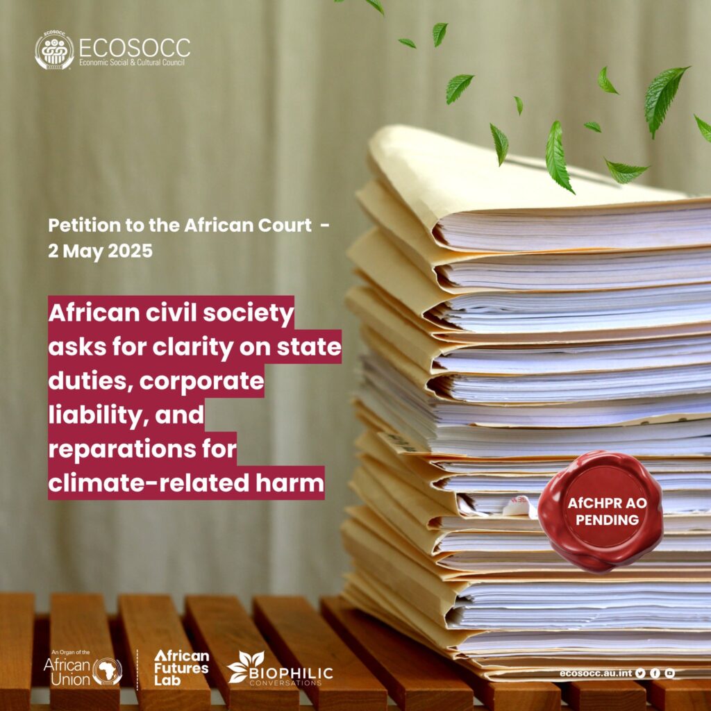 Led by the @LawyersofAfrica with support from the African Climate Platform, @Resilient_40, @naturaljustice and the Environmental Lawyers Collective for Africa, the petition asks the Court to clarify what African states are required to do under #HumanRights #law when facing #ClimateChange.