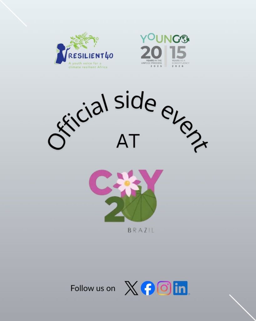 Resilient40 is proud to officially announce our participation in the 20th UN Climate Change Conference of Youth (COY20) in Brazil, where we will host a side event focused on amplifying African youth leadership in the global climate agenda.